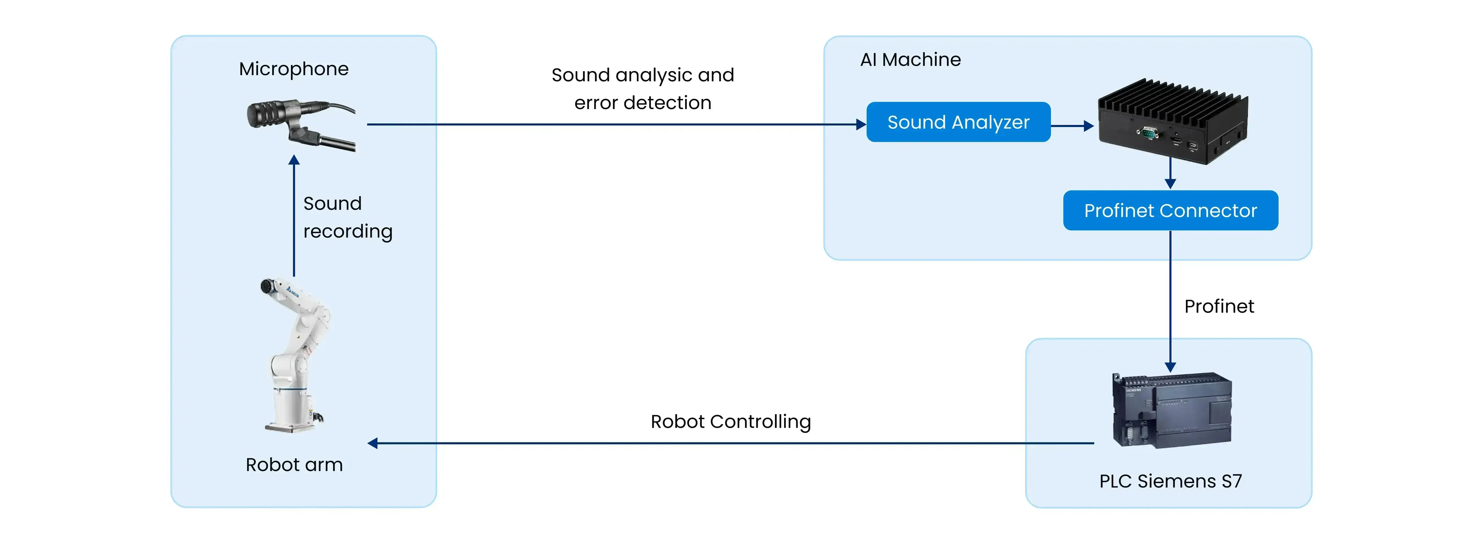 Facilitate automated responses and precise intervention by robotic arms, directly controlled by the system's error detection outputs
