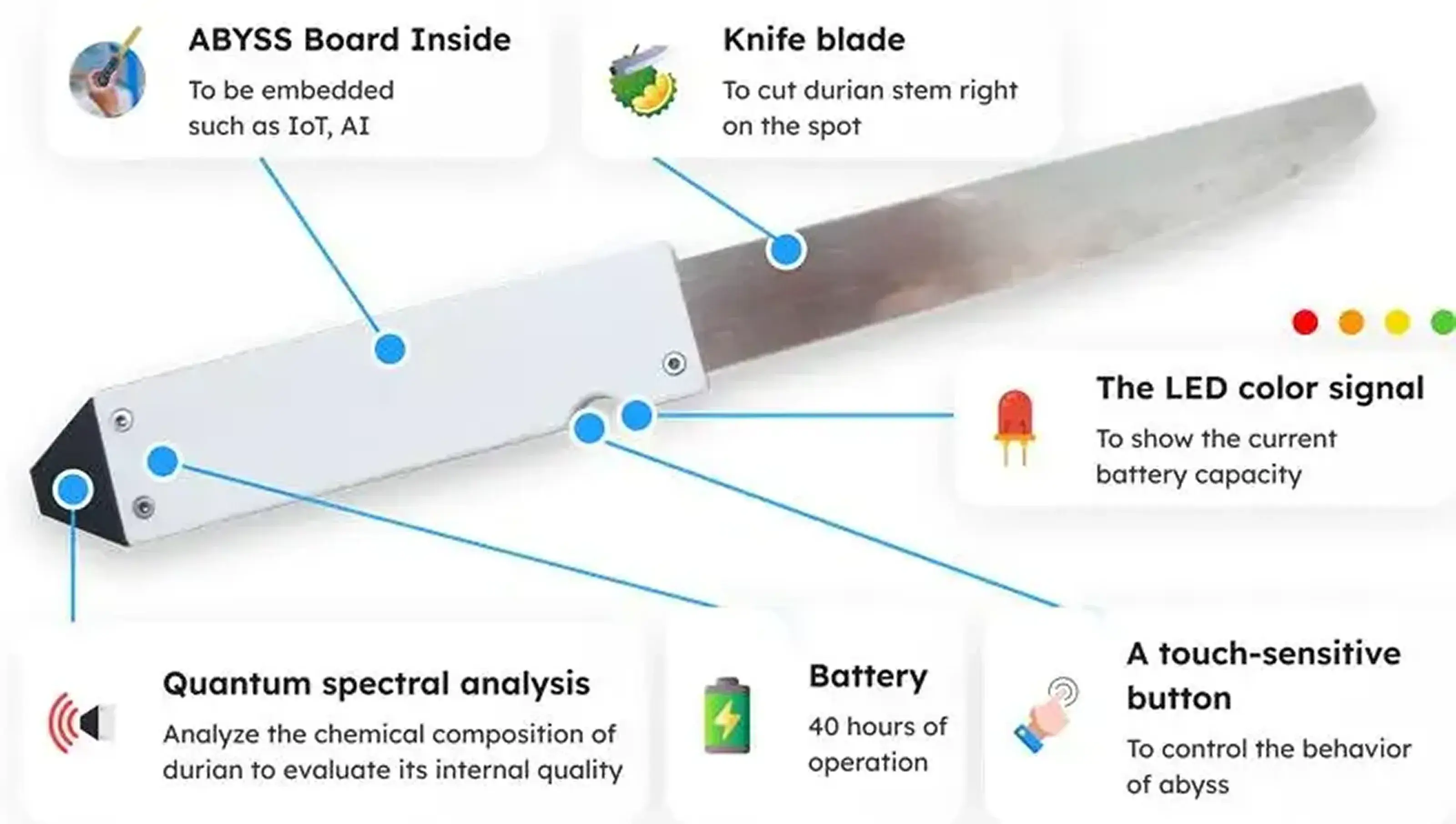 The knife scans the fruit’s internal structure when pressed against the stem
