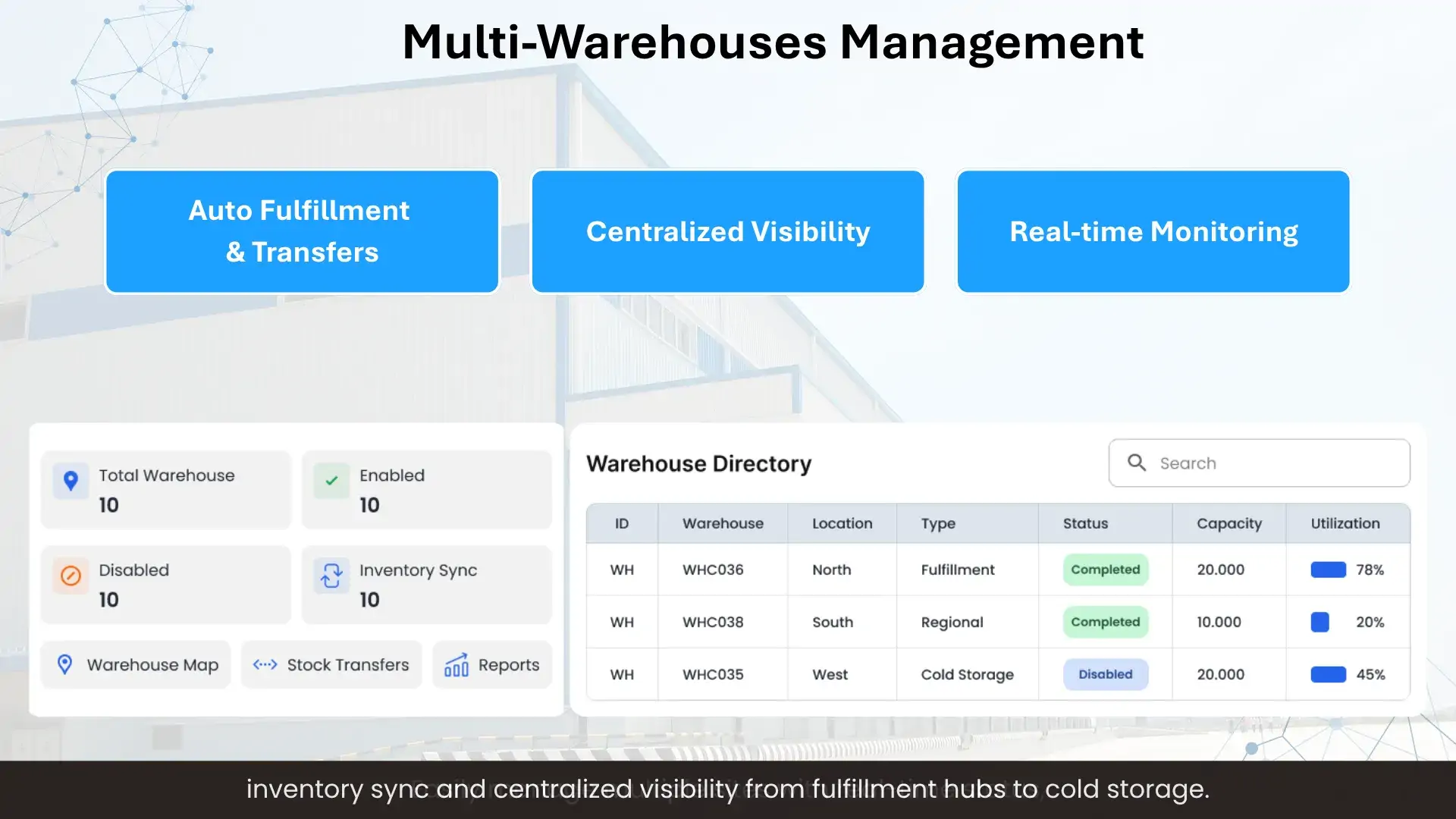 Manage inventory, operations, and stock transfers across multiple warehouse locations in one system.