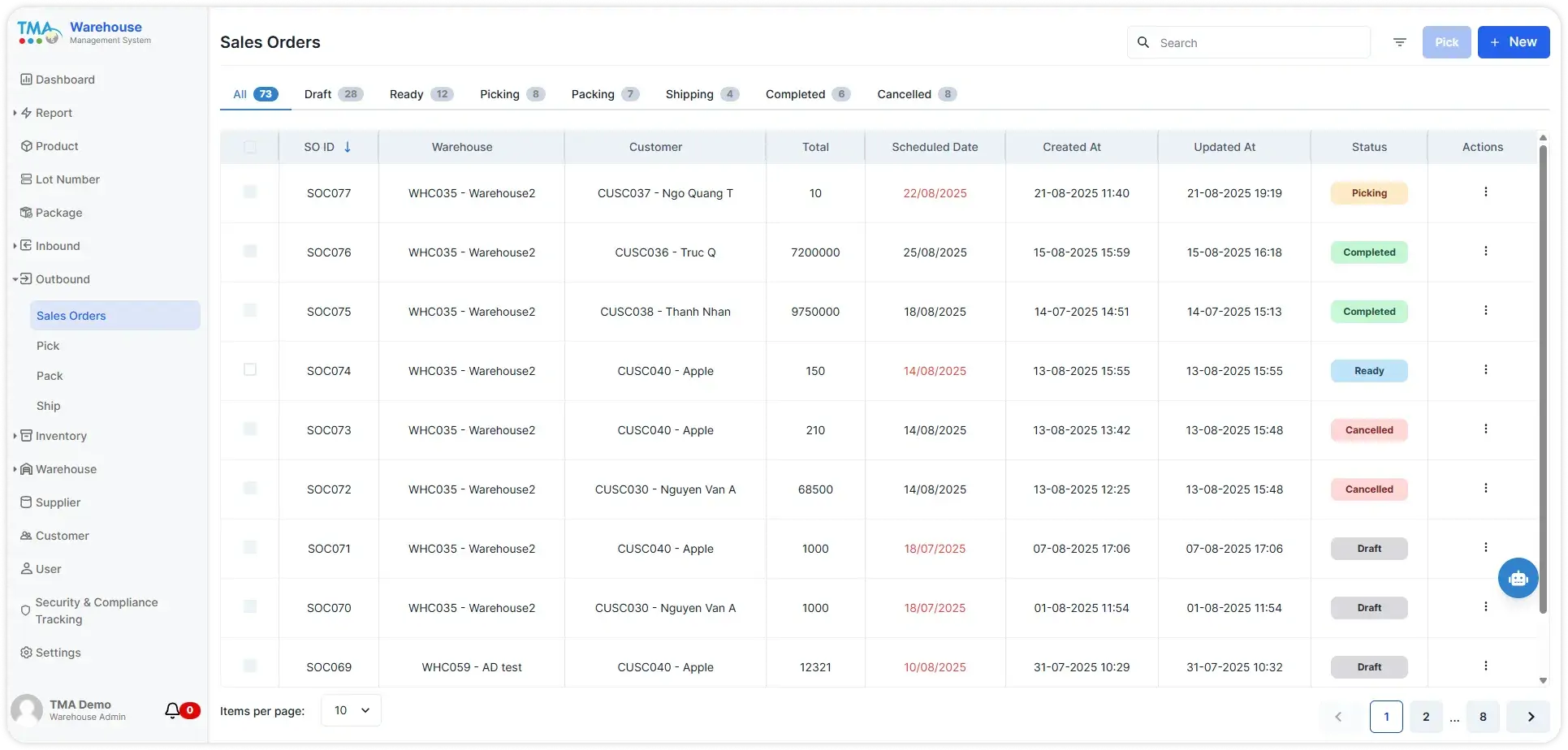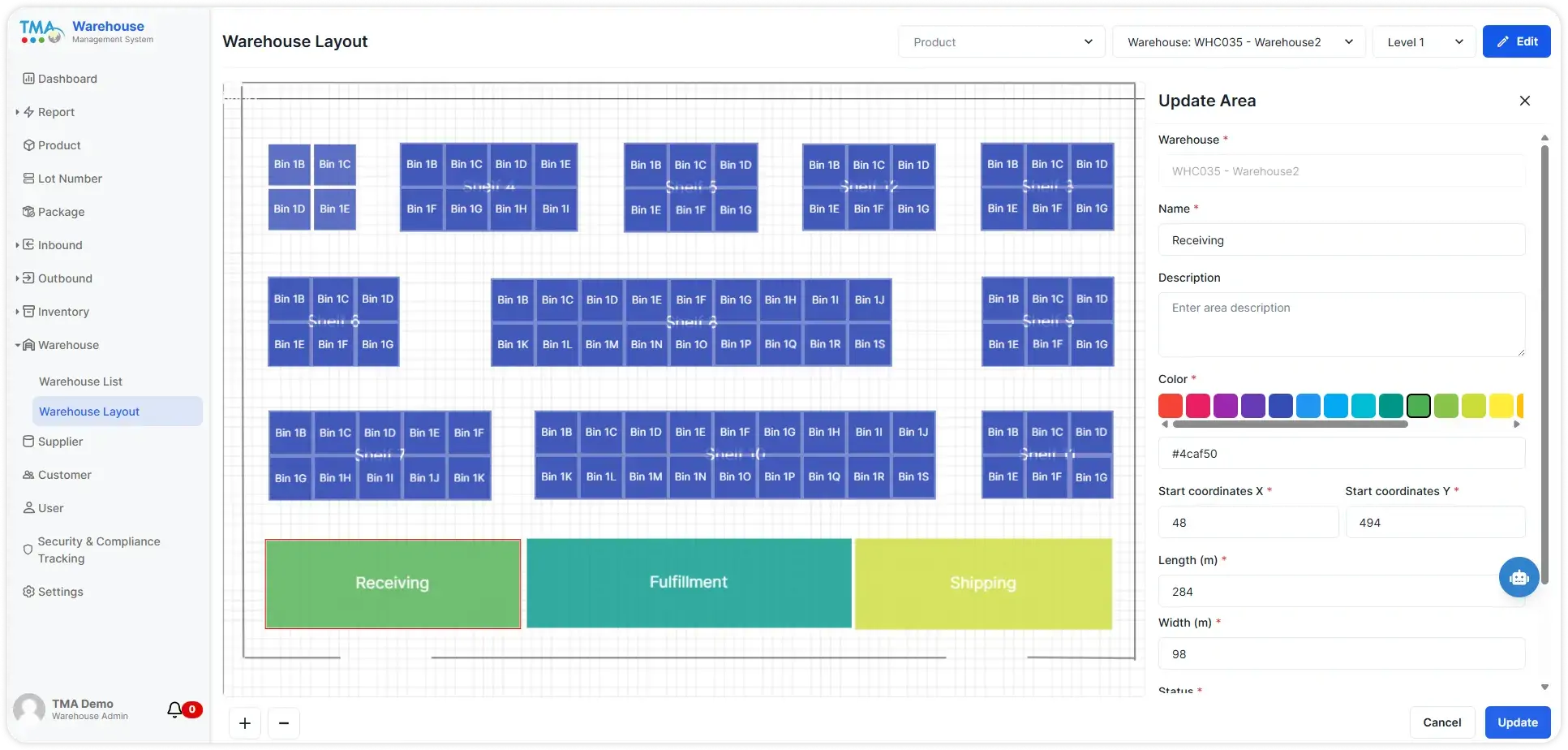TMA Warehouse Management System is an AI-powered platform that simplifies warehouse management with real-time visibility and automation.