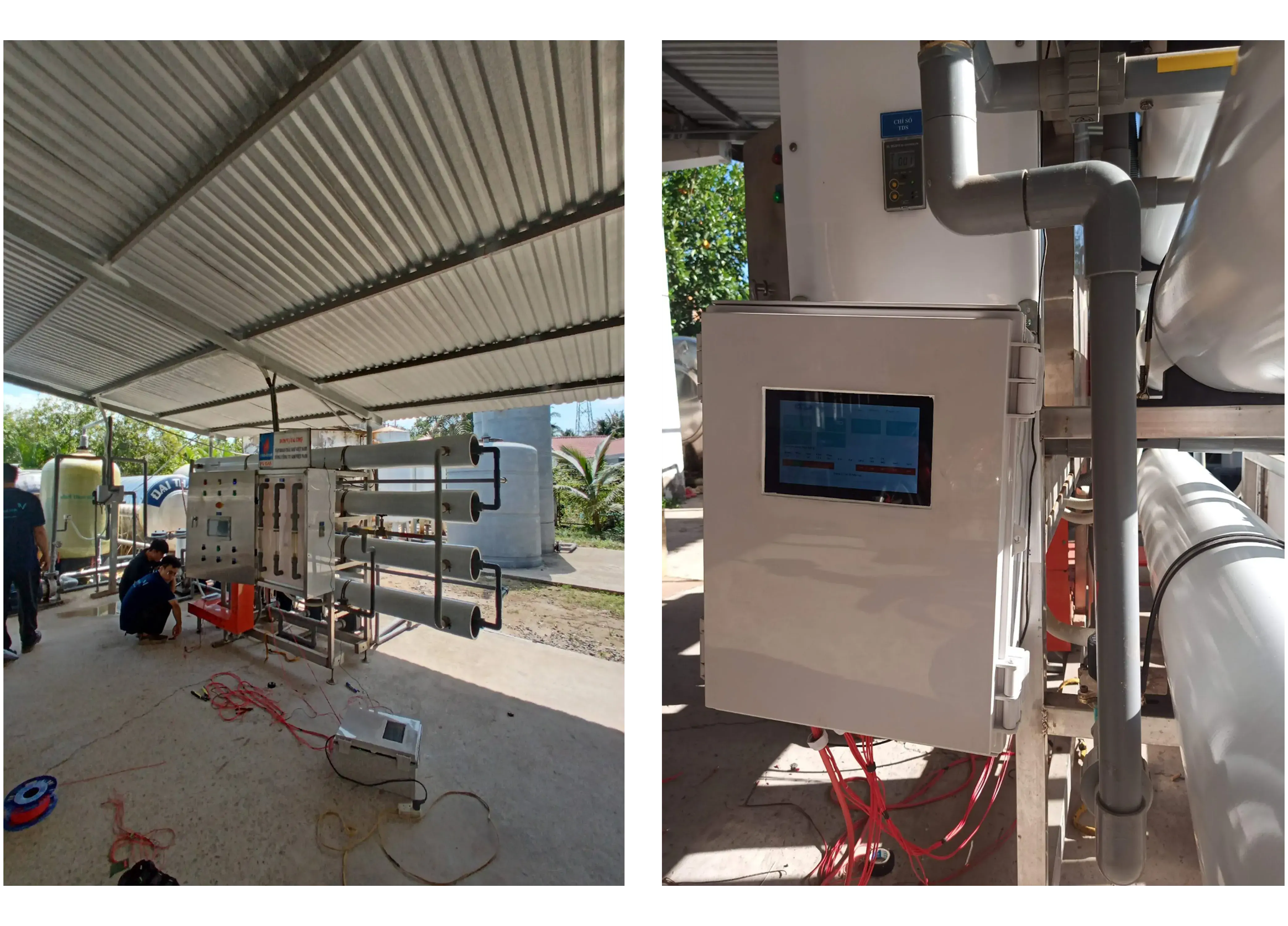 Water Treatment Monitoring System (WT-IoT) is a smart, IoT-based management solution designed to control and monitor water purification equipment operation, water quality, and treatment progress. This system allows for the remote monitoring and control of devices over the internet (4G or WiFi) using a computer or mobile phone, with the option to set up fully automatic and semi-automatic control modes. Furthermore, it automatically detects abnormalities and sends alerts through warning lights, email,